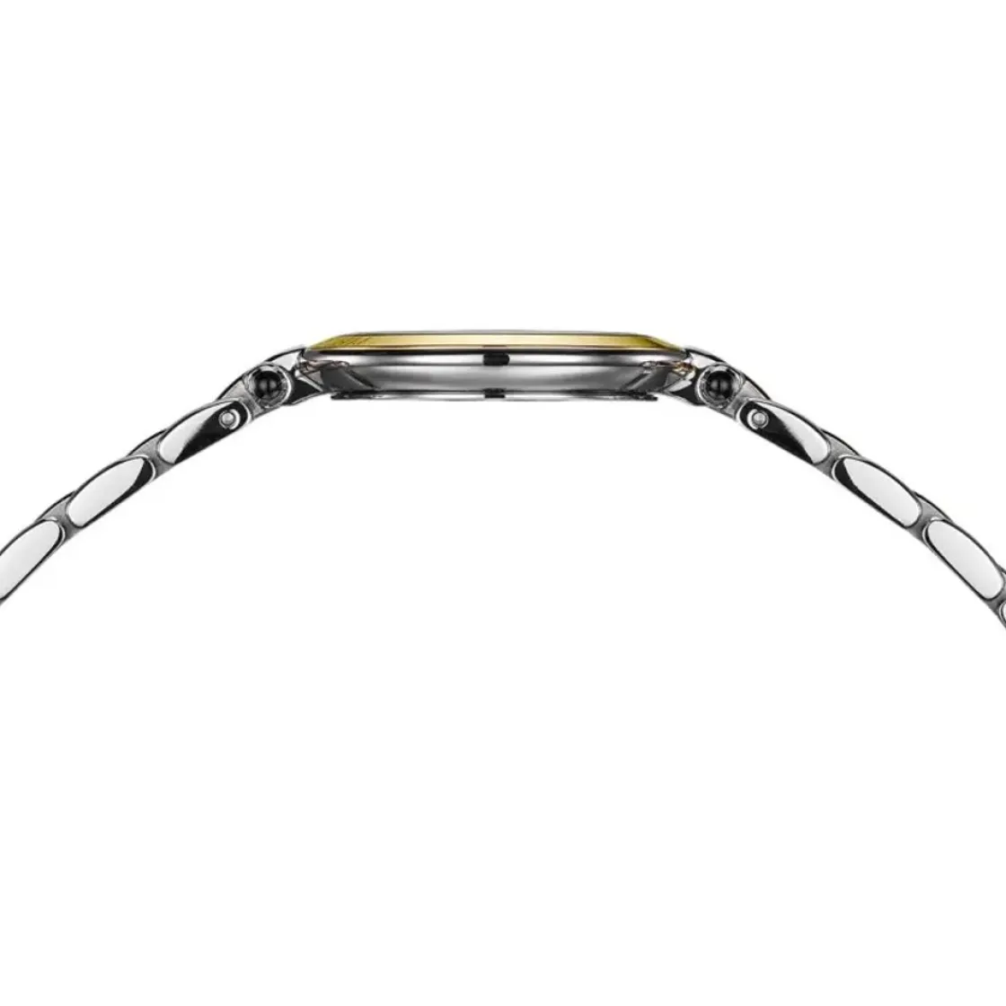 Montre de la collection Tradition Haute Elegance Vintage, mouvement quartz suisse 2 aiguilles, verre saphir, cadran argenté, boitier acier bicolore sur bracelet acier bicolore avec boucle déployante.