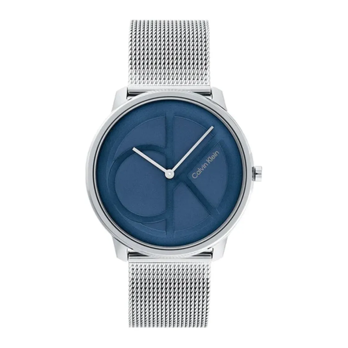 Montre de la collection Iconic, mouvement à quartz 2 aiguilles, cadran bleu, boitier en acier sur bracelet acier en maille milanaise.