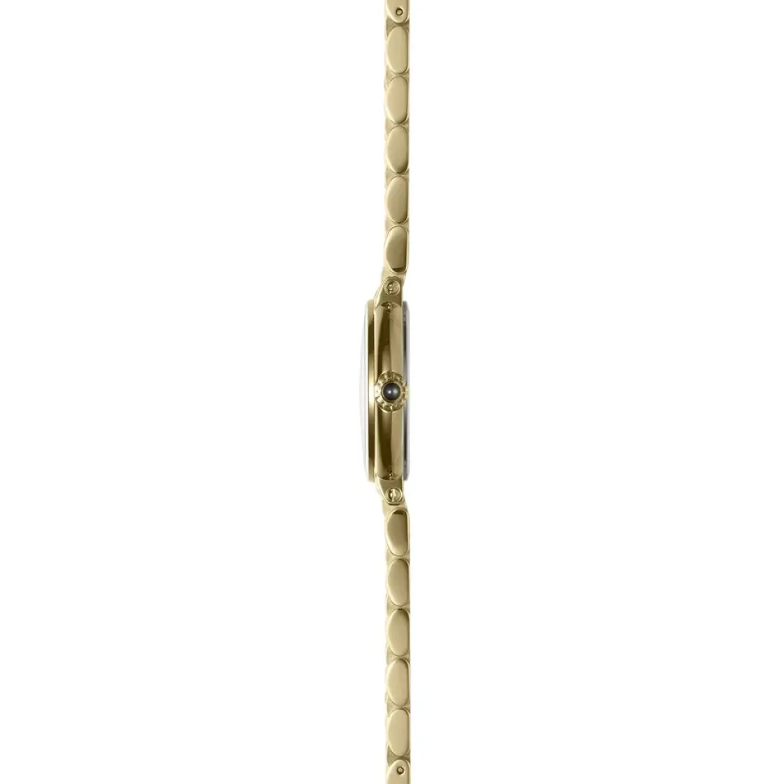 Montre de la collection Galet, mouvement suisse à quartz 2 aiguilles, verre saphir, cadran nacré, boitier en PVD Or jaune sur bracelet PVD or jaune avec boucle déployante.