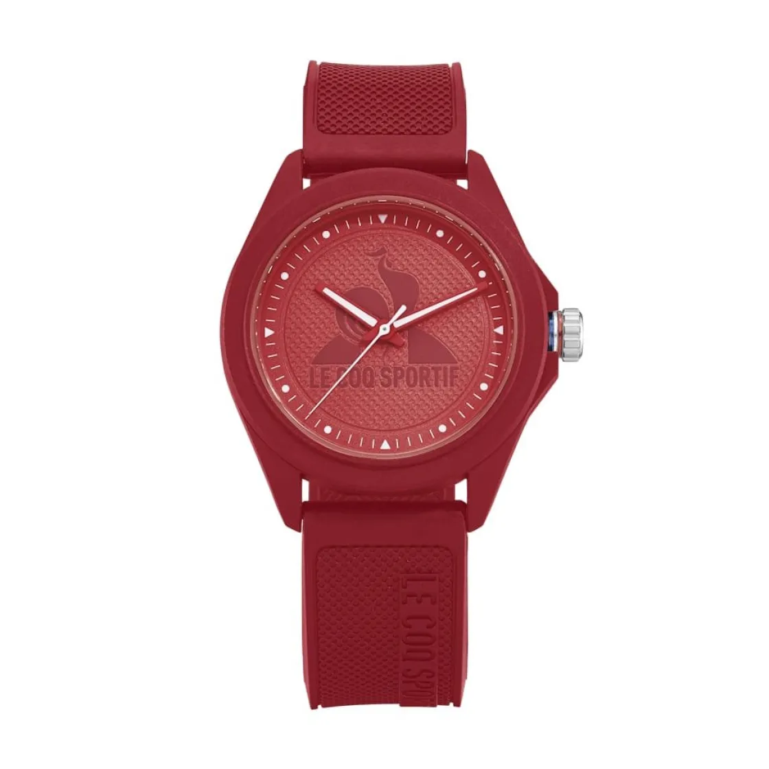 Montre de la collection Monochrome, mouvement quartz 3 aiguilles, cadran rouge, boitier rouge sur bracelet caoutchouc rouge.
