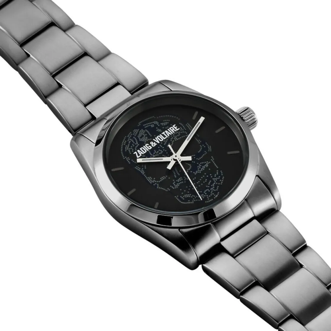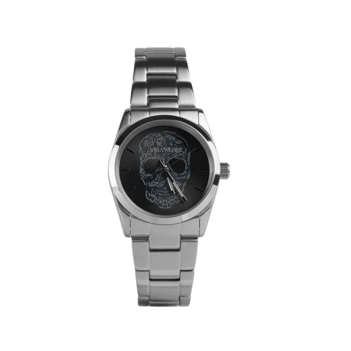 Montre Zadig et Voltaire, mouvement quartz 3 aiguilles, cadran noir, boitier acier sur bracelet acier avec boucle déployante.