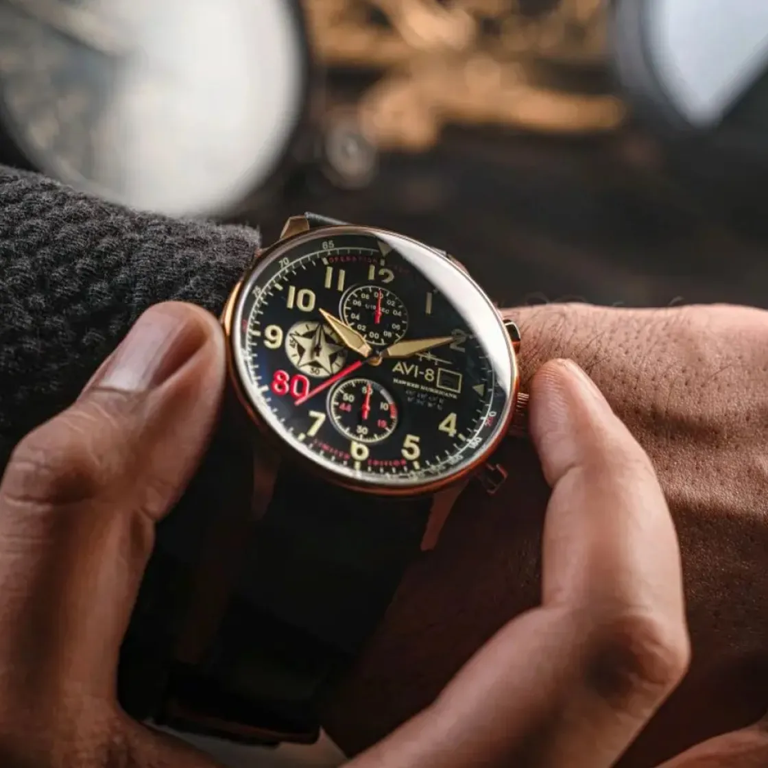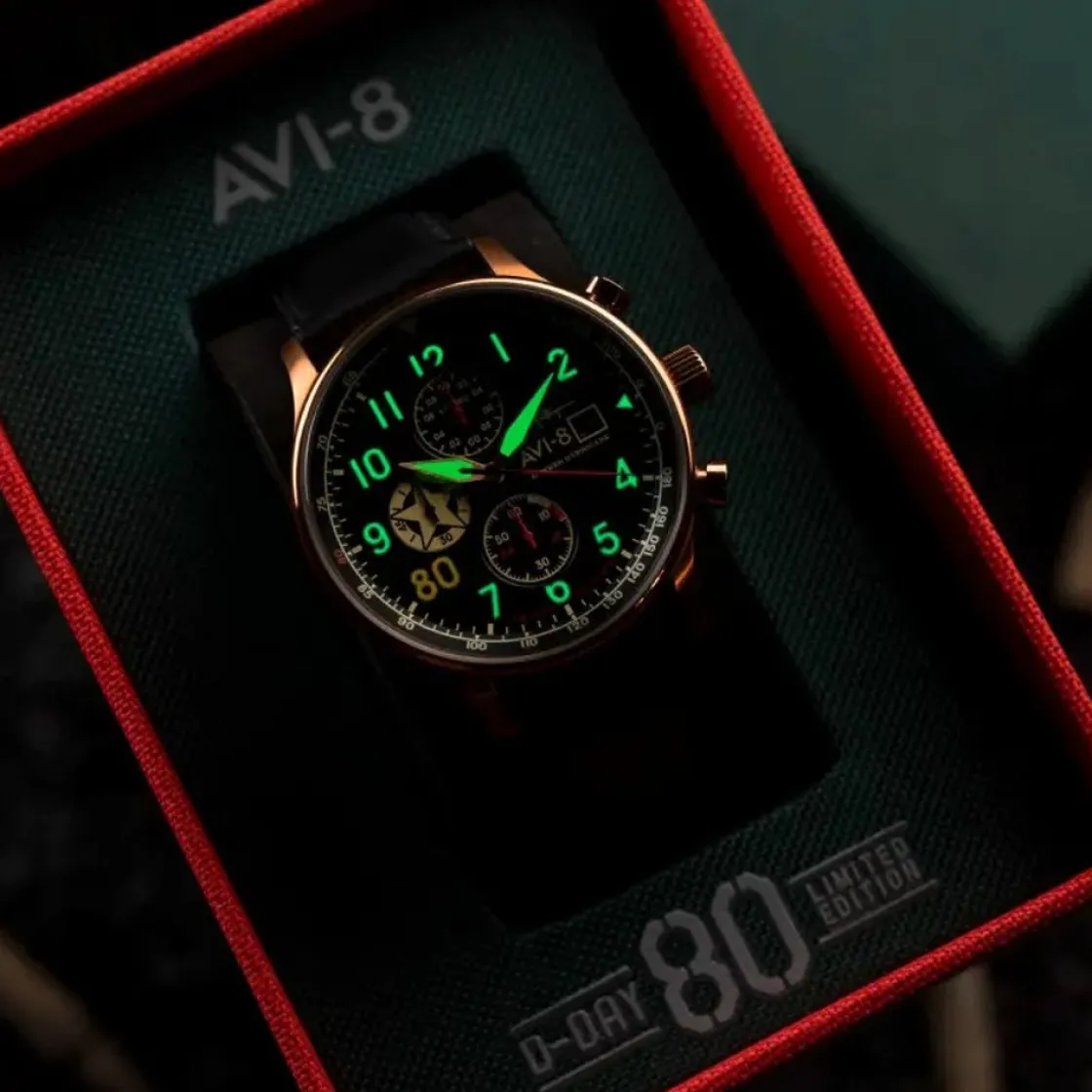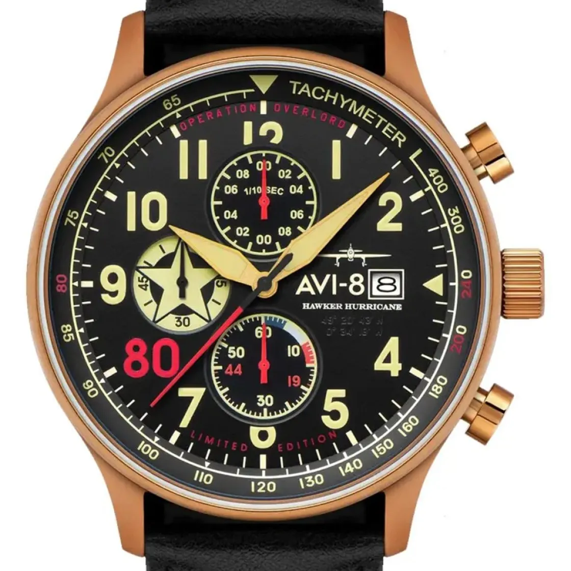 AVI-8 est une marque horlogère qui met un point d’honneur à concevoir des modèles qui célèbrent l’histoire et l’esthétique de l’industrie aéronautique. Ses montres sont inspirées de l’aviation et se démarquent grâce à leur robustesse et à leur haute performance. Aujourd’hui, elle est fière de vous présenter ce magnifique garde-temps Hawker Hurricane Classic Chronograph D-Day 80 AV-4011-1D. Proposé en édition limitée, il célèbre l’esprit courageux, le symbolisme et l’héritage de l’Opération Overlord durant la Seconde Guerre mondiale.