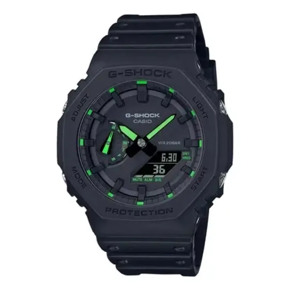 Optez pour une montre de la série GA-2100 fusionnant un look polyvalent et intemporel avec la forme octogonale emblématique des G-SHOCK, désormais disponible dans d’élégantes couleurs. Fabriqué en résine fine renforcée de fibre de carbone, son boîtier est plus fin et plus léger, mais aussi plus résistant que jamais. Cette montre de conception simple et de construction robuste est dotée d’un cadran noir qui lui donne un style épuré et tendance.