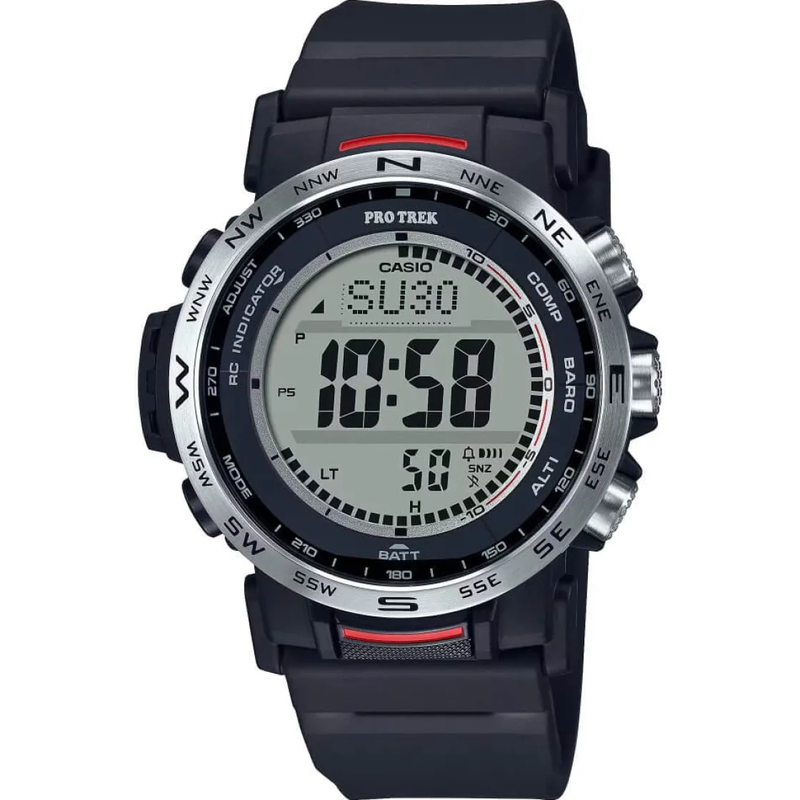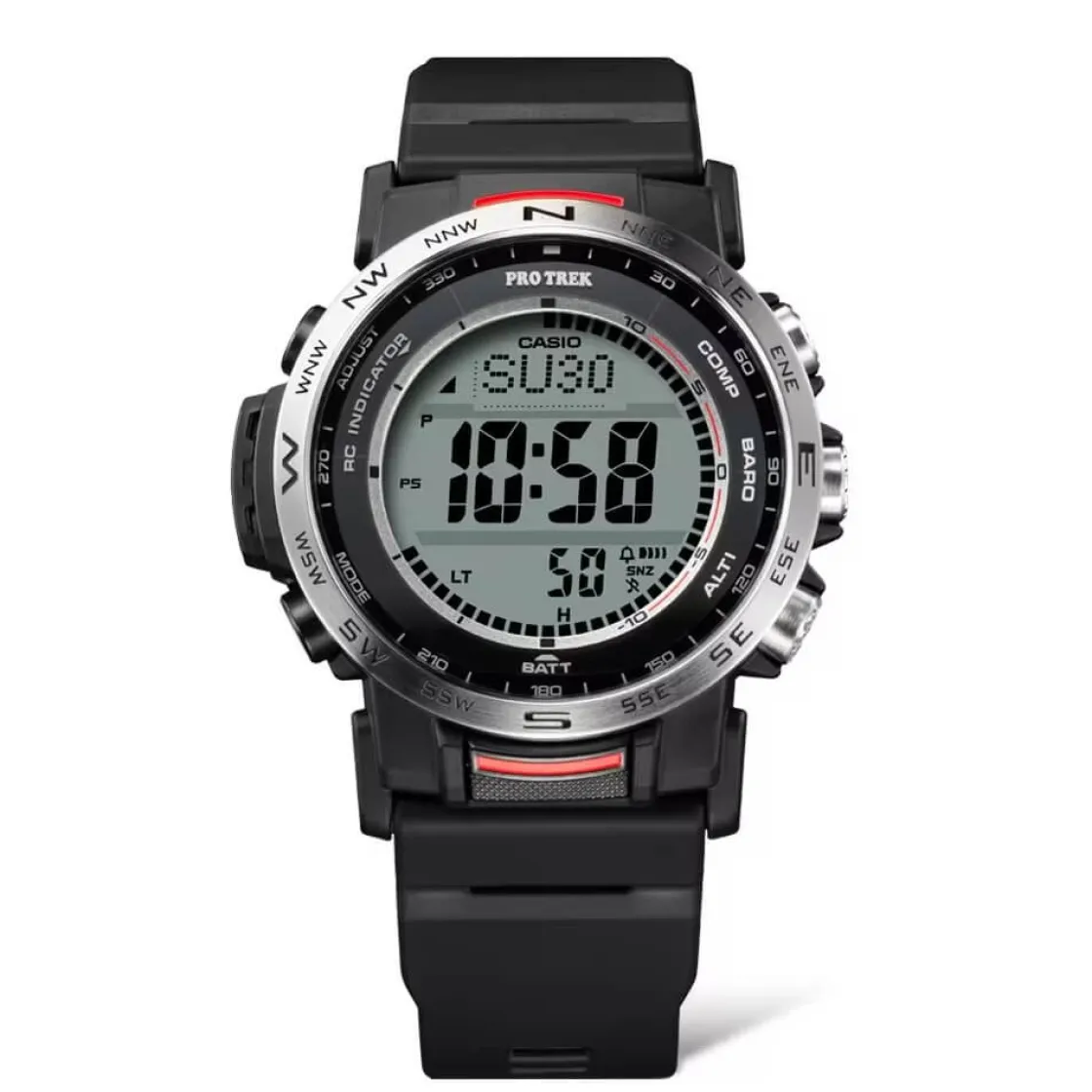 Montre de la collection Pro Trek, mouvement digital Tough Solar , cadran noir , boitier en résine noir sur bracelet résine noir.