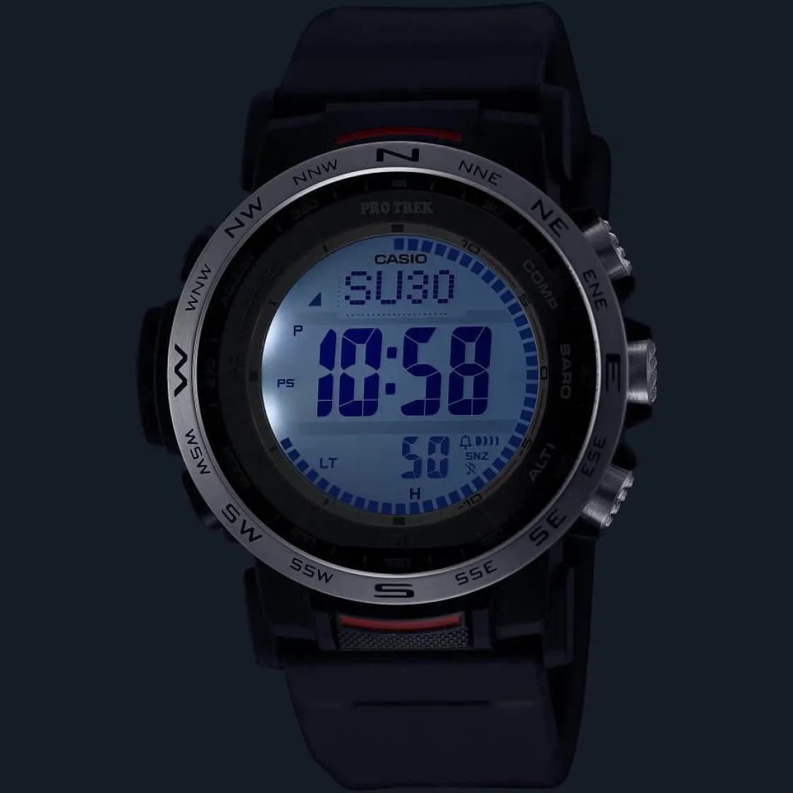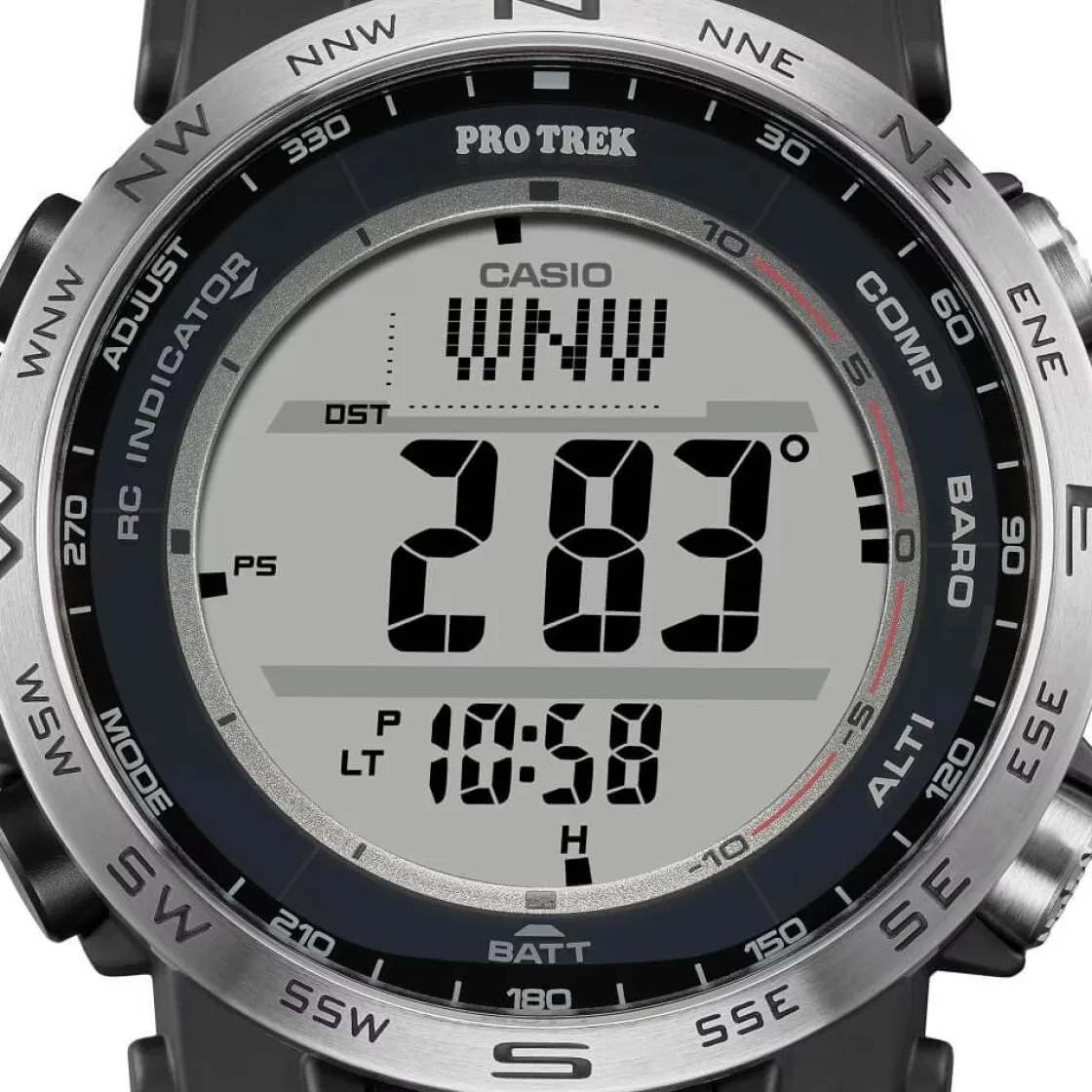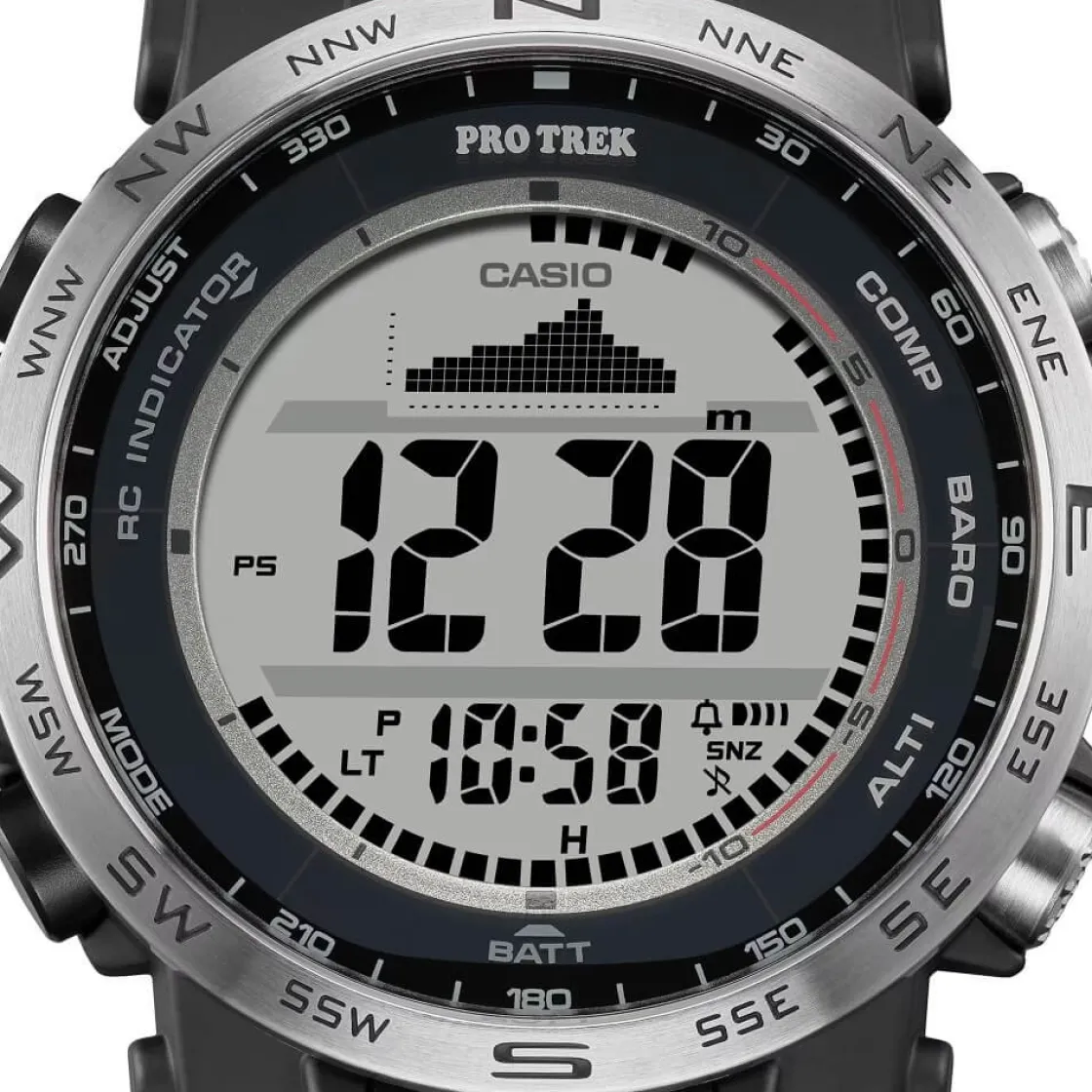 Cette montre est vraiment complète : elle offre des caractéristiques pratiques pour les activités en plein air en toute simplicité, tout en intégrant des matériaux choisis pour réduire l’impact sur l’environnement. Exprimez votre passion pour les grands espaces et votre attachement à l’environnement avec la PRW-35 numérique. Une simple pression sur l’un des trois grands boutons de fonction spécifiques permet d’obtenir les relevés du compas, de la pression barométrique, de la température et de l’altitude. La finition moletée antidérapante permet une utilisation plus intuitive et plus précise des boutons, même avec des gants.
