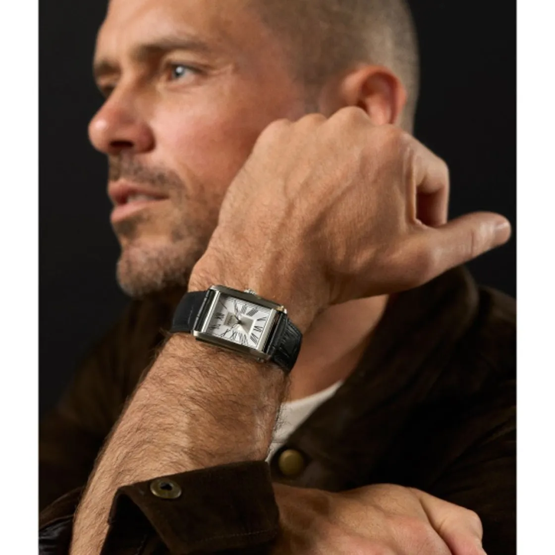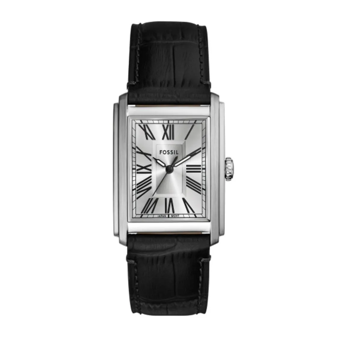 Montre de la collection Carraway, mouvement quartz 3 aiguilles, cadran argenté, boitier acier sur bracelet cuir noir.