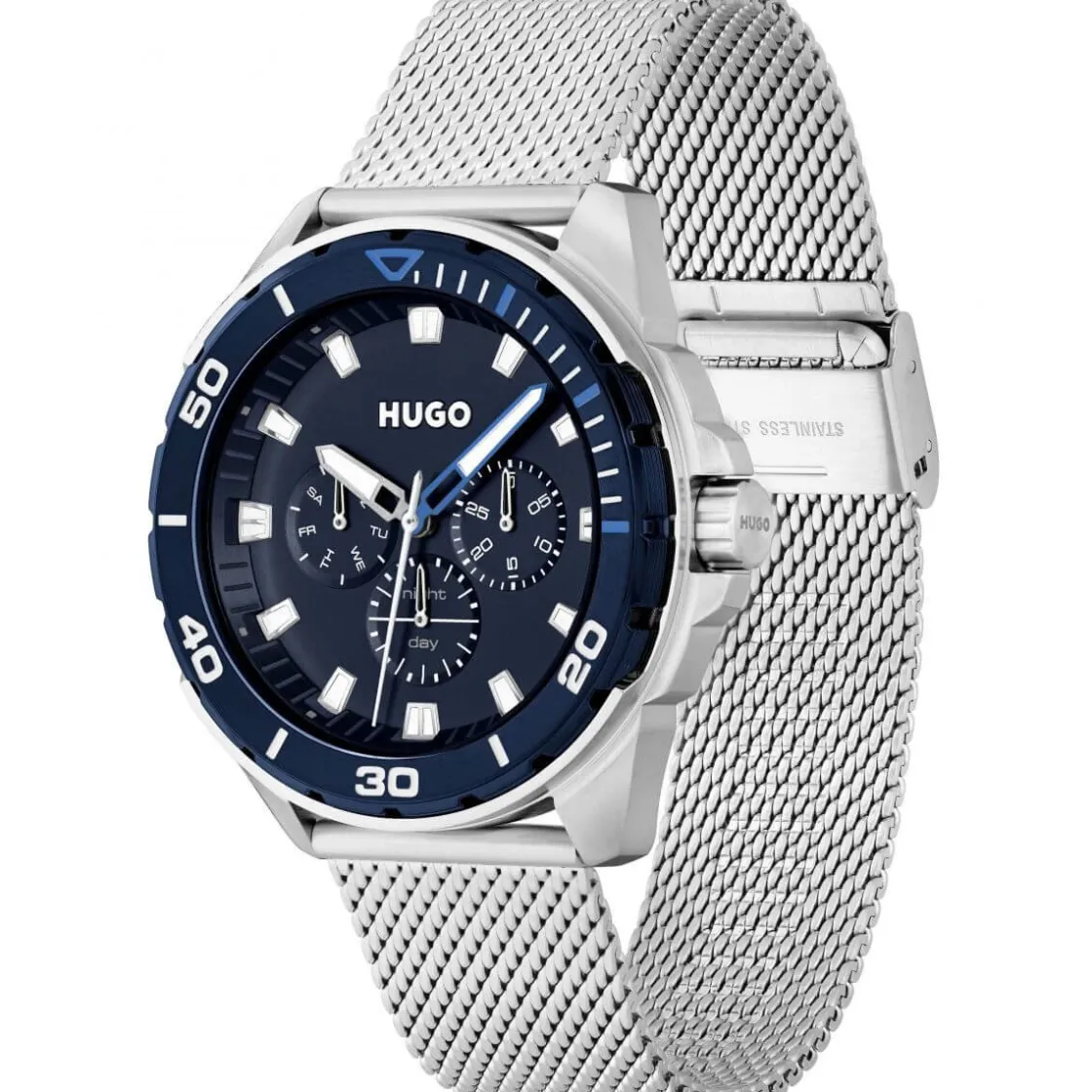 Montre de la collection Fresh, mouvement multifonctions à quartz 3 aiguilles, cadran bleu, boitier en acier sur bracelet acier en maille milanaise.
