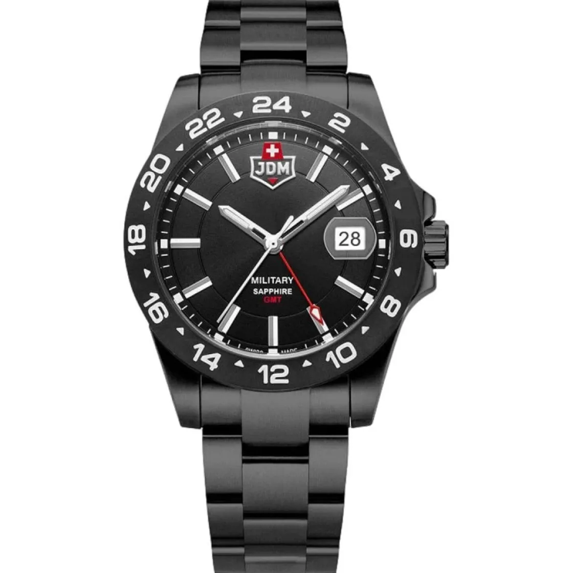Ce modèle Swiss Made de la ligne JMD MILITARY SAPPHIRE est étanche à 100 m et pratiquement indestructible – l’eau ou la neige, le froid, la chaleur tropicale, le sable ou la boue ne peuvent pas faire grand-chose à ce garde-temps de précision doté d’un couvercle en verre saphir.