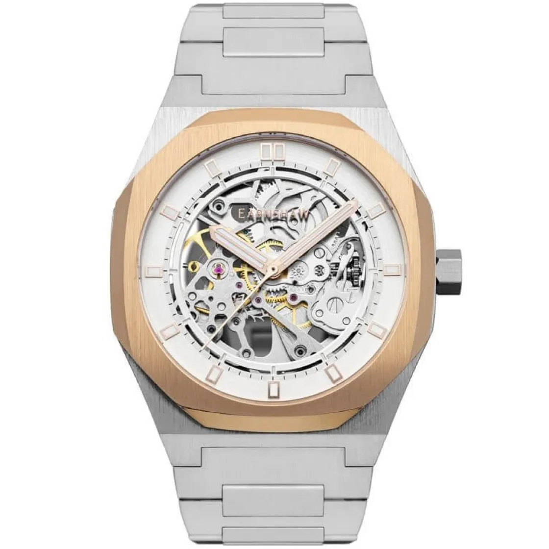 Montre de la collection Drake, mouvement automatique 2 aiguilles, cadran squelette, boitier en acier bicolore sur brace…
