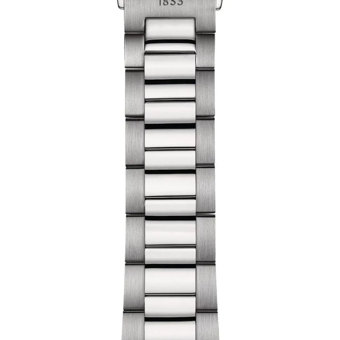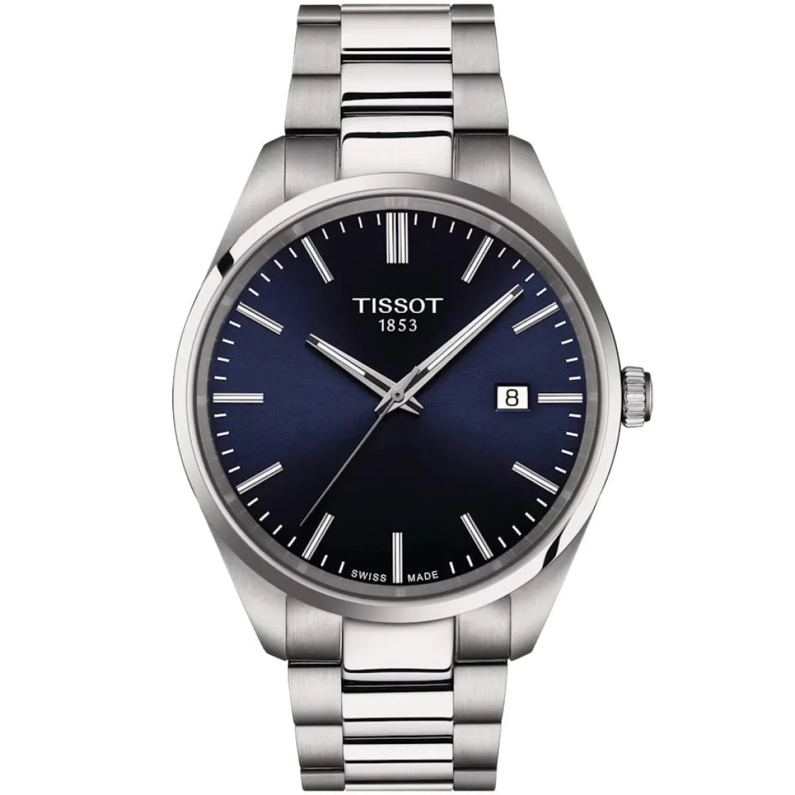 Montre de la collection PR100, mouvement quartz suisse 3 aiguilles, dateur à 3h, cadran bleu , verre saphir, boitier en acier sur bracelet acier avec boucle déployante.