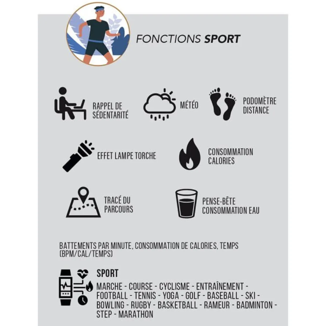Montre SMARTY mixte – Team – SW034 – Boitier rectangulaire en métal – Bracelet silicone – Étanchéité IP68 : 5ATM – Temps de veille de 10 jours – compatible Android 5,0. / IOS 10.0 ou supérieur – Chargeur : OUI – Portée Bluetooth 10 mètres maxi