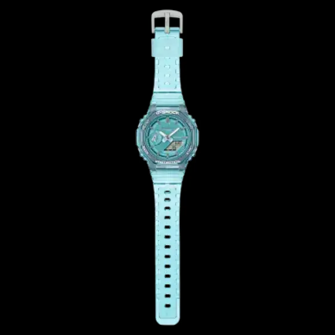 Offrez-vous un plaisir métallique apparent en optant pour la combinaison analogique-numérique GA-2100, toujours aussi populaire, dans un profil plus fin et plus compact. Des designs métalliques translucides dans un choix de couleurs pour des montres polyvalentes qui s’associent à toutes les tenues, toute l’année. Les marques d’index traitées avec une finition semi-mate par dépôt de vapeur donnent vie à l’aspect métallique apparent.