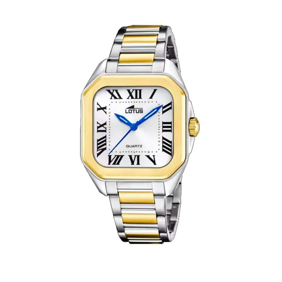 Montre de la collection Square, mouvement quartz 3 aiguilles, cadran blanc, boitier acier bicolore sur bracelet acier bicolore.