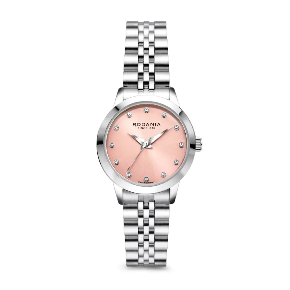 Montre de la collection Montreux, mouvement suisse à quartz 3 aiguilles, verre saphir, cadran rose, boitier en acier s…