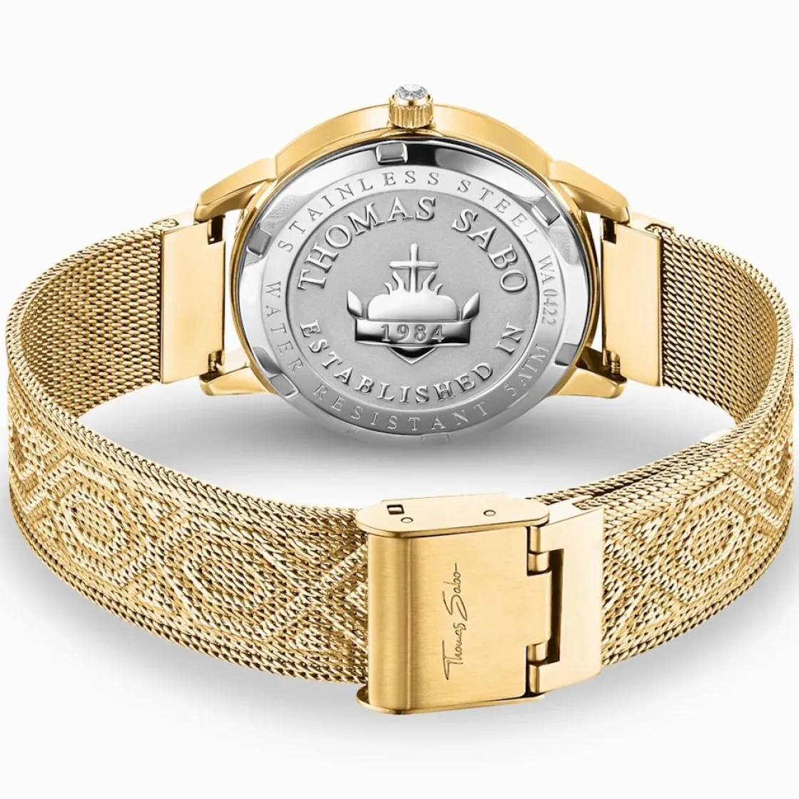 Montre de la marque Thomas Sabo, mouvement quartz 3 aiguilles, cadran fantaisie , boitier acier doré sur bracelet acier doré maille milanaise.