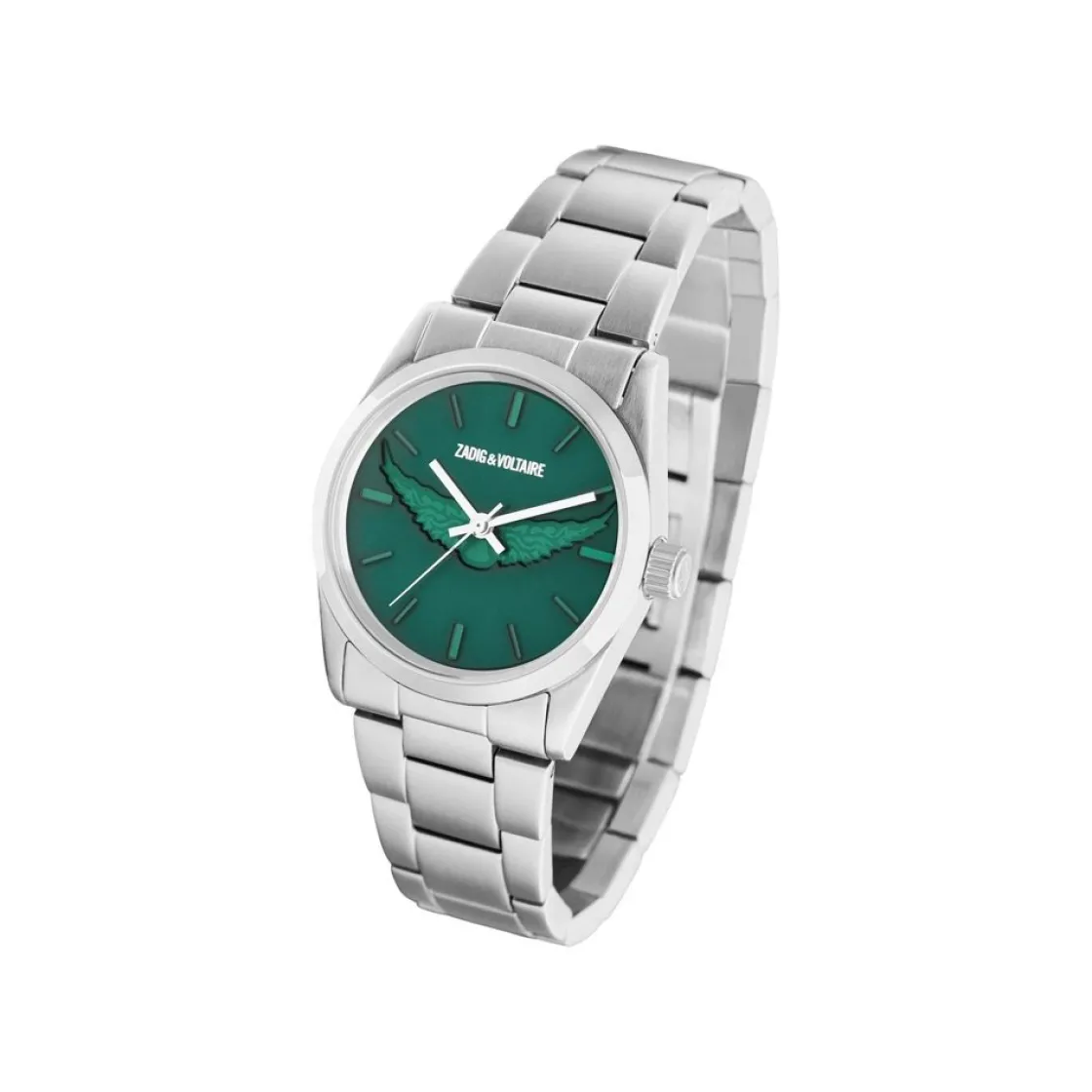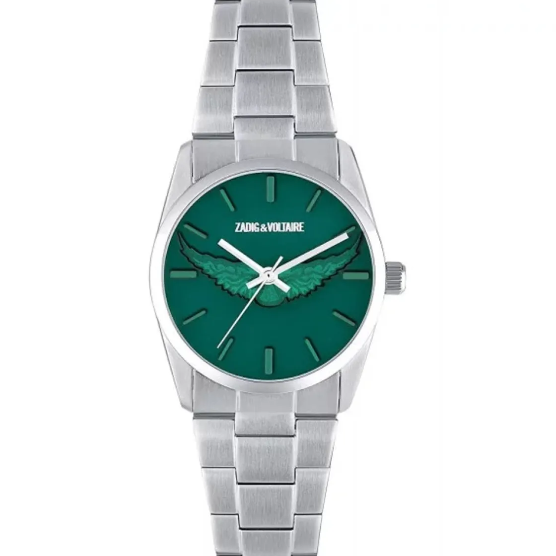 Montre Zadig et Voltaire, mouvement quartz 3 aiguilles, cadran vert, boitier acier sur bracelet acier avec boucle déployante.