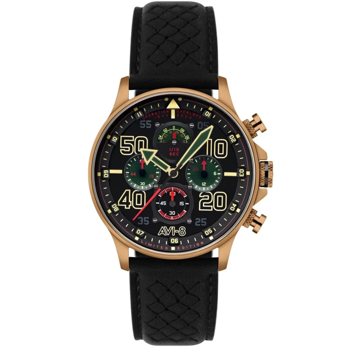 Montre de la collection D-DAY 80 , mouvement quartz chronographe, cadran noir , boitier acier doré rosé sur bracelet cuir noir.