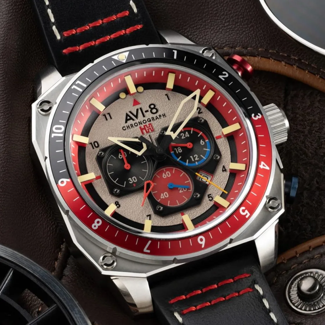 La marque AVI-8 vous invite dans l’univers de l’aviation à travers des montres au design travaillé et aux matériaux de qualité. Sa collection Hawker Hunter, inspirée de l’excellent avion de chasse britannique des années 1950, est composée de modèles dotés d’une performance sans égale et d’une robustesse indéniable.