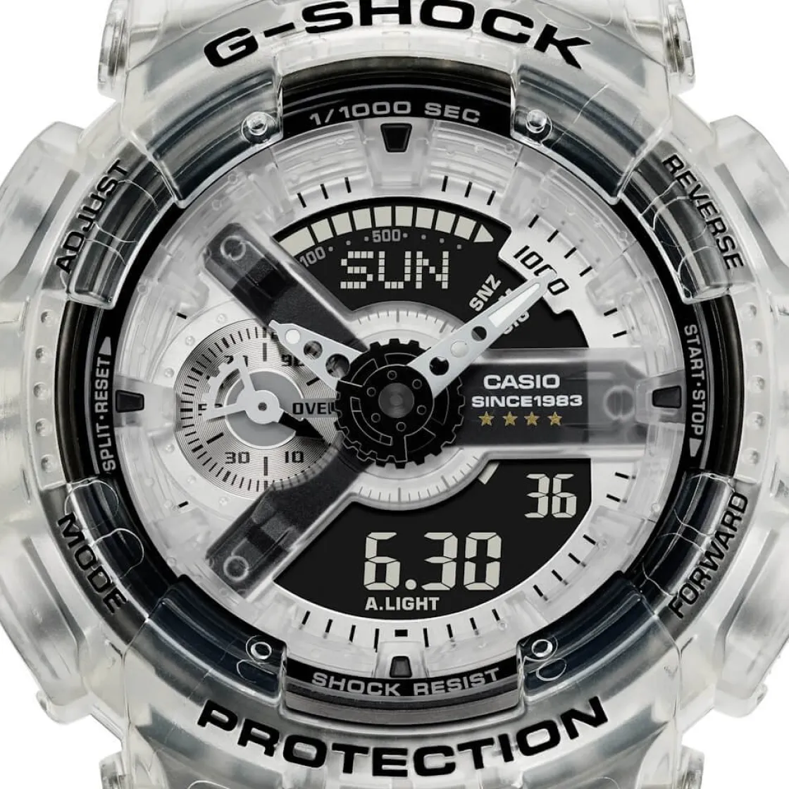 Exprimez-vous avec la gamme Clear Remix du 40ème anniversaire de la G-SHOCK : des modèles G-SHOCK populaires revisités avec des composants transparents pour un look des plus épurés. Les matériaux transparents du bracelet, du boîtier, du cadran, de l’écran LCD et des boutons laissent entrevoir le module gravé de la lettre « G » et du logo de G-SHOCK. Le fond du boîtier arbore le logo conçu par Eric Haze à l’occasion du 40ème anniversaire, et la boucle du bracelet est gravée de quatre étoiles en clin d’œil à cet anniversaire.