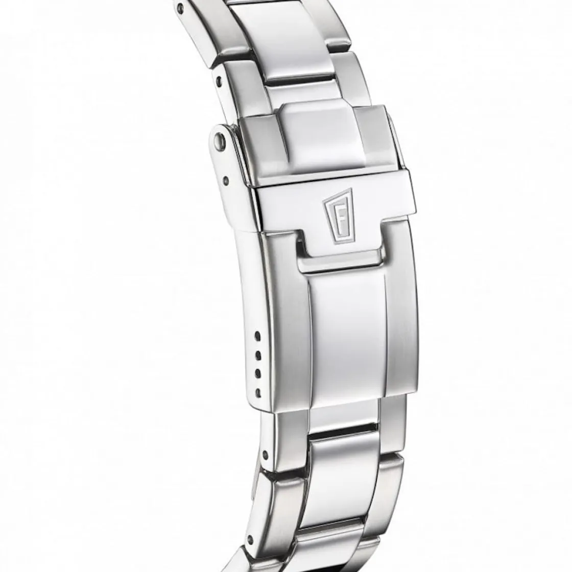 Montre de la collection Swiss Made, mouvement quartz suisse 3 aiguilles, verre saphir, cadran gris, boitier acier sur bracelet acier avec boucle déployante.