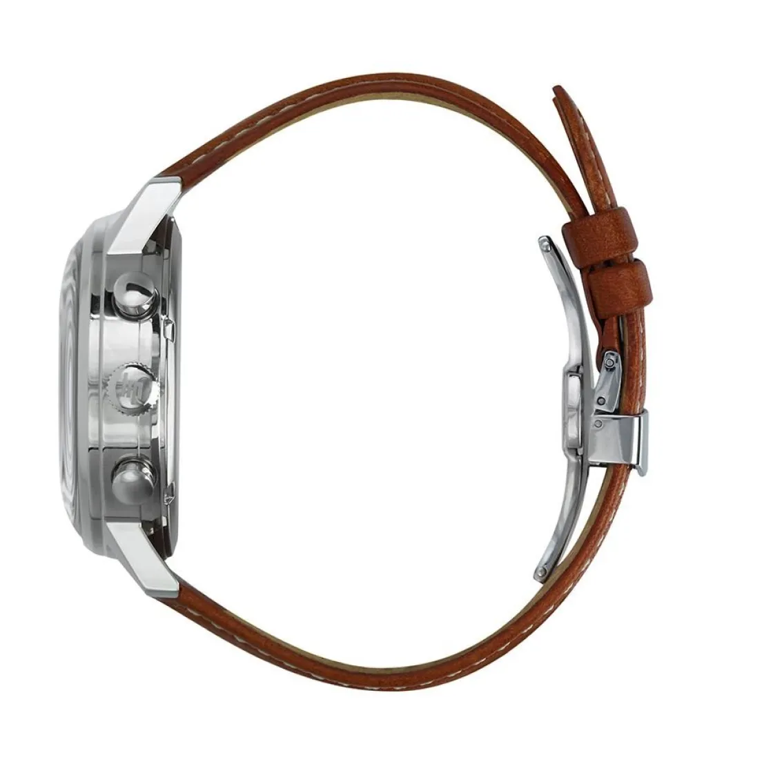 Montre de la collection Rallye Edition Limitée , mouvement chronographe automatique, dateur à 6h, verre saphir, cadran bicolore, boitier acier sur bracelet cuir brun.