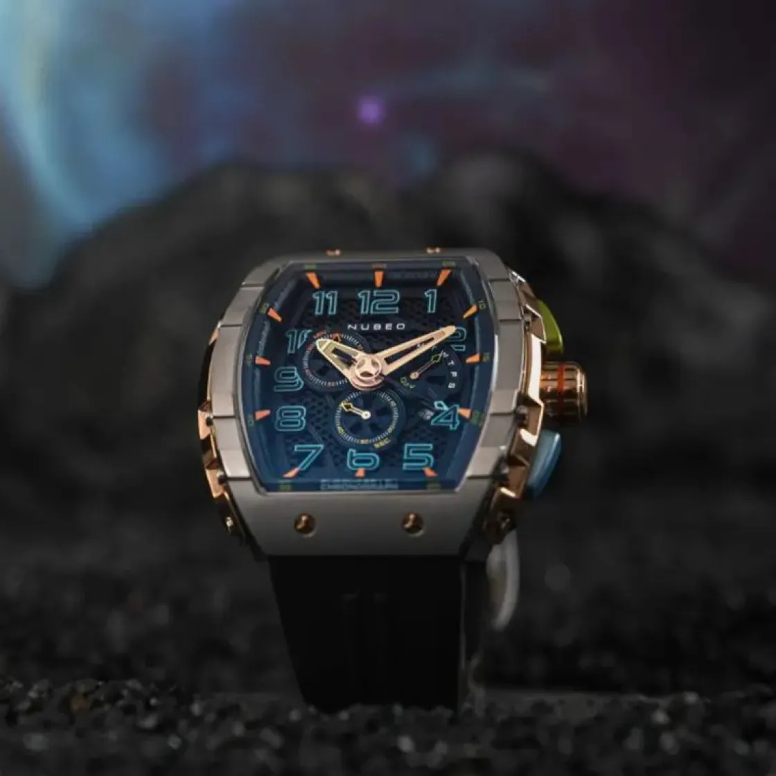 Homme NUBEO Montre Magellan Chronographe Retrograde Asteroid Bleu NB-6088-01