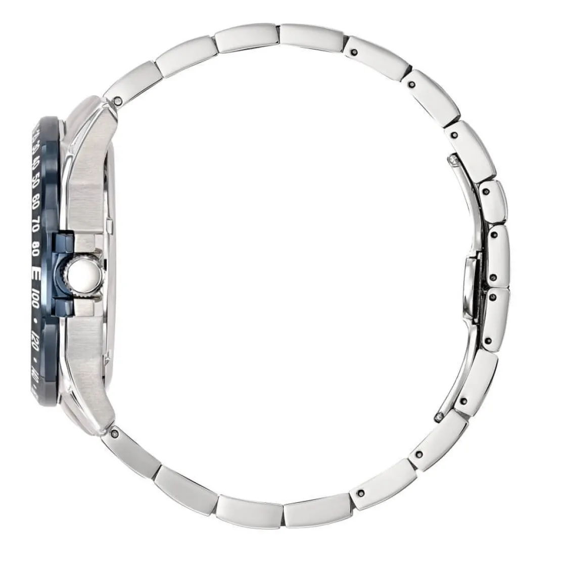 Montre de la collection Athos 6, mouvement automatique , cadran bleu, boitier en acier sur bracelet acier avec boucle déployante.