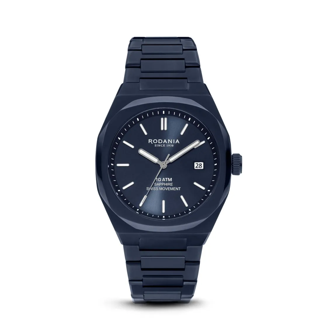 Montre de la collection Cycling, mouvement suisse à quartz 3 aiguilles, verre saphir, dateur à 3h, cadran bleu, boitier acier bleu sur bracelet acier bleu.