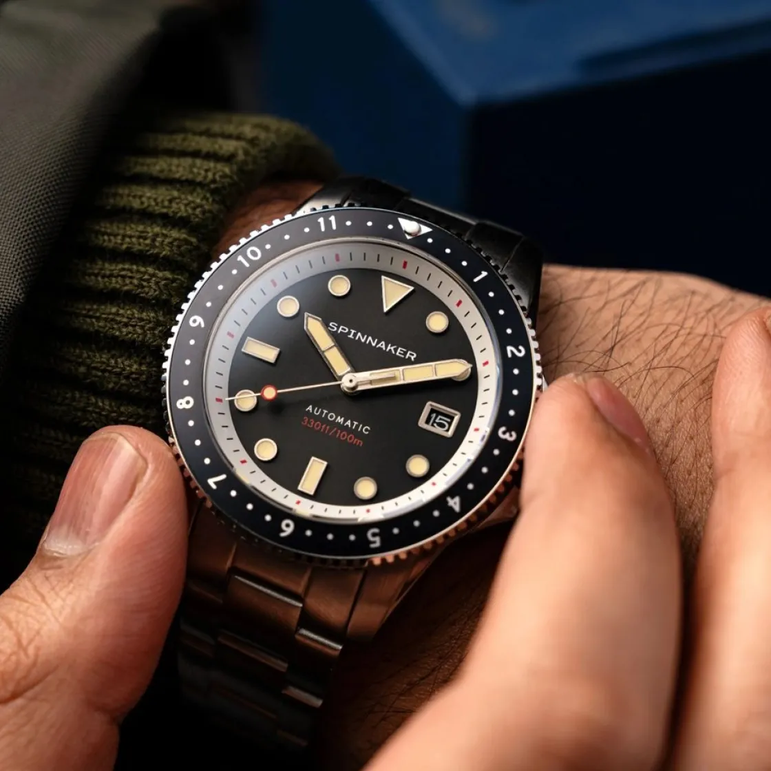 Le modèle homme Croft Pioneer Automatic, de la collection Spinnaker, rend hommage à Robert Croft, En 1967, Robert CROFT, un instructeur de la US Navy, est devenu le premier Homme à plonger en apnée à plus de 60 mètres de profondeur.