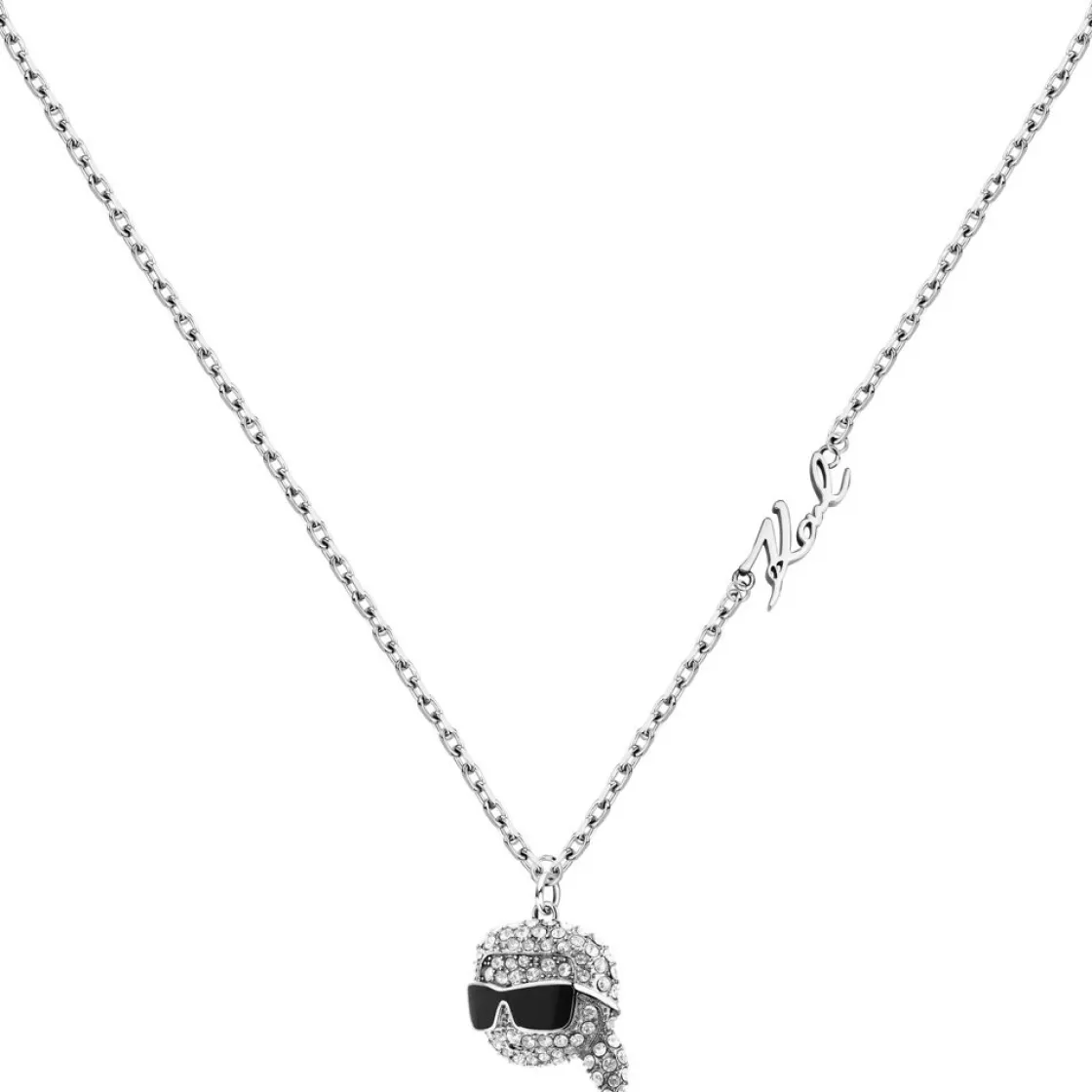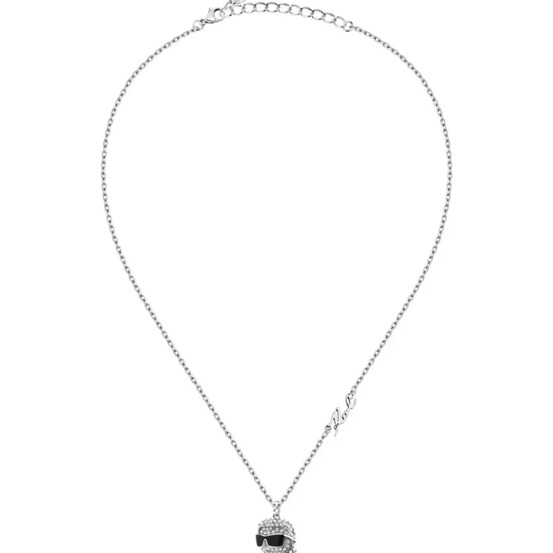 Ornez-vous de cet élégant collier à breloque doté d’une chaîne délicate de longueur 40/45 cm avec des détails KARL Signature. La breloque Ikon incrustée de cristaux pavés ajoute une touche ludique, tandis qu’un fermoir mousqueton réglable assure un ajustement parfait.
